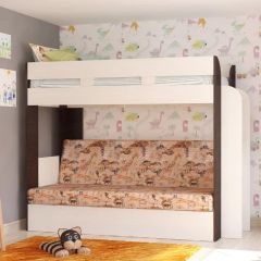 Кровать 2-х ярусная с диваном Карамель 75 (Саванна) Анкор светлый/Бодега | мини фото 1