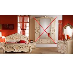 Шкаф для одежды и белья из коллекции "Флоренция" имеет 3 секции с распашными фасадами. Две боковые секции комплектуются полками и штангой для вешалок. В центральной части располагается секция с полками для одежды, 3 ящика для белья. Центральный фасад декорирован высоким зеркалом.